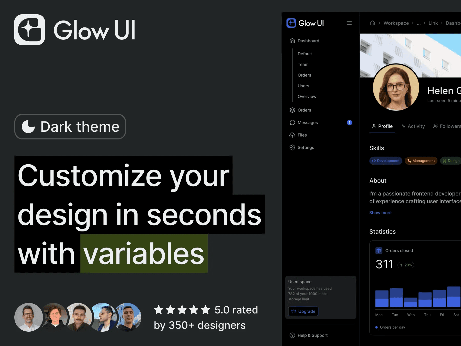 Glow UI is a comprehensive UI kit and design system for Figma — built to help you design web apps, dashboards, SaaS products, and more with speed and consistency. It provides everything you need for wireframing, UI design, mockups, and developer-ready assets.