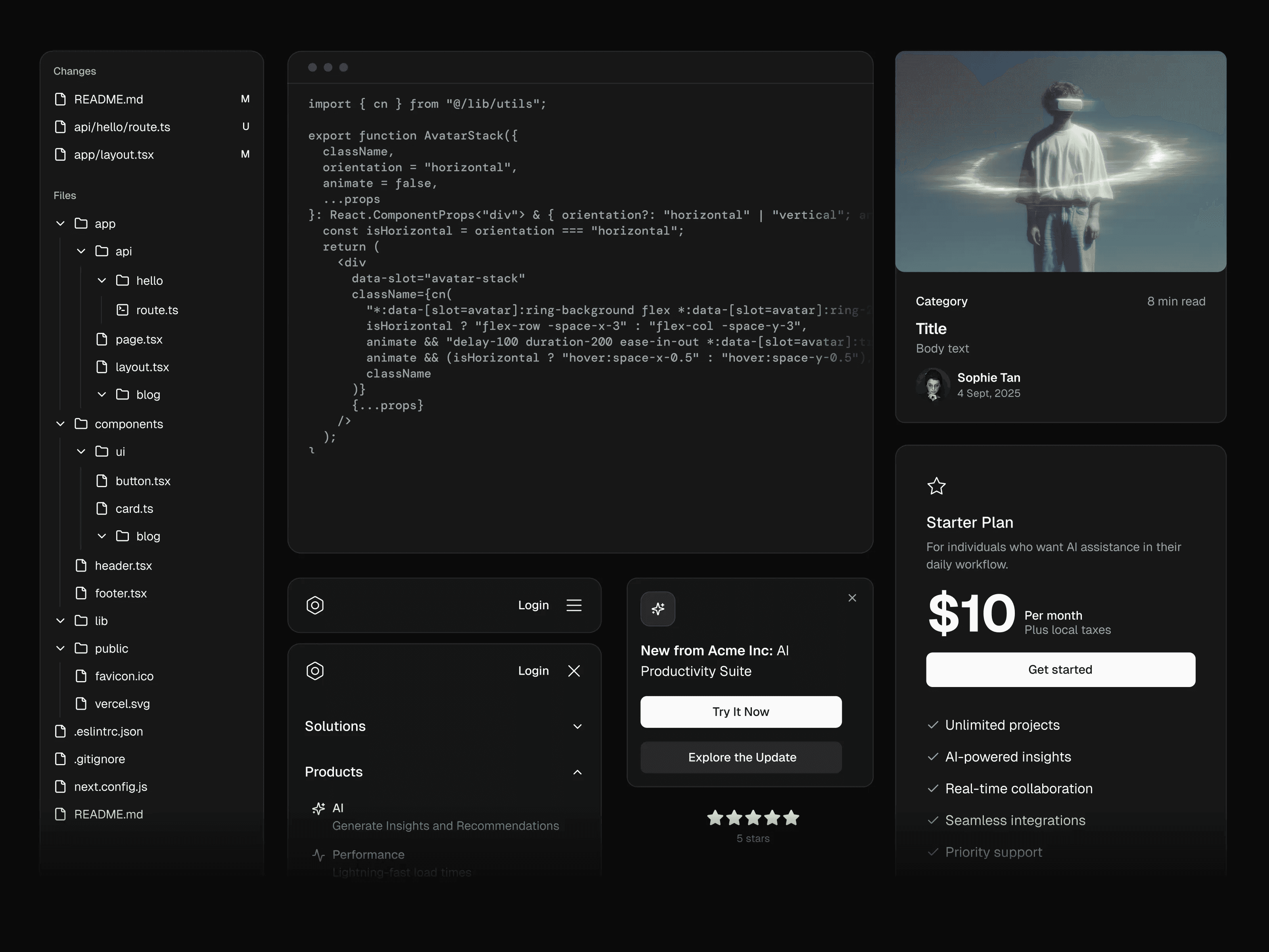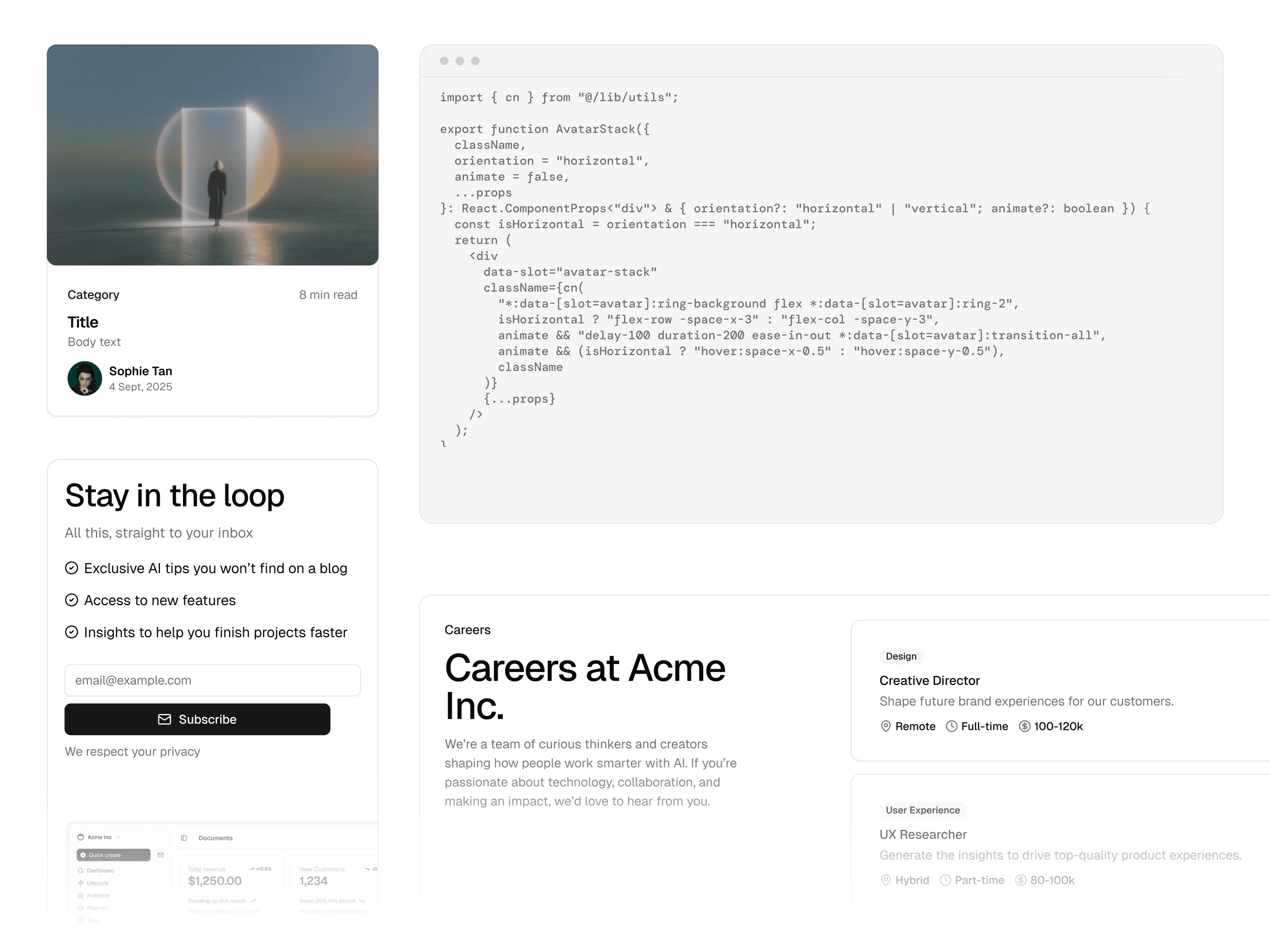 Production-ready: Written in React + Tailwind CSS with proper typing, suitable for real-world products, not just demos.
